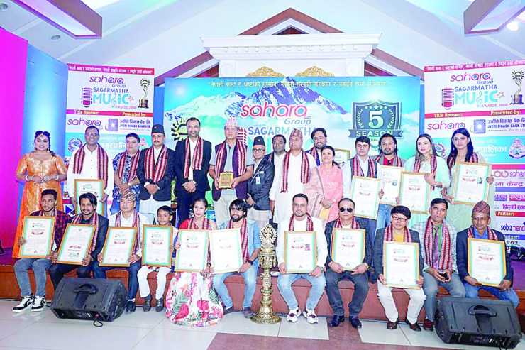 गीत संगीतका विभिन्न ४५ विधामा अवार्ड प्रदान गर्दै शुक्रबार राजधानीमा सहारा ग्रुप पाचौं सगरमाथा म्युजिक अवार्ड २०८० सम्पन्न भएको छ।