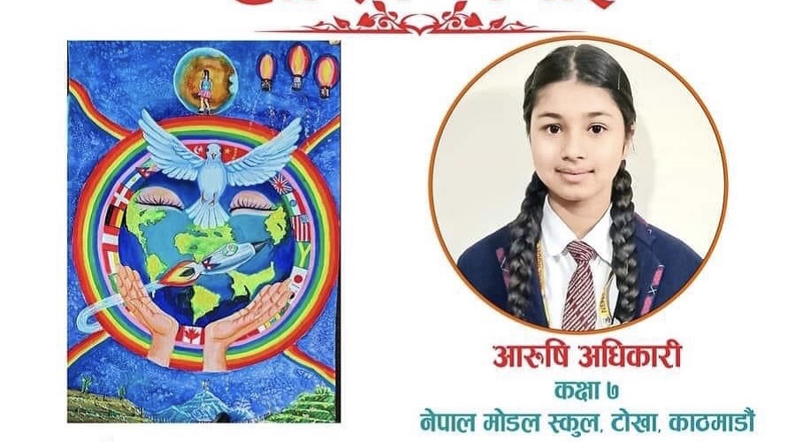 नेपाल मोडल स्कुल, टोखा, काठमाडौं कक्षा ७ मा अध्ययनरत अधिकारीले ‘Dare to Dream’ सपना देख्ने हिम्मत गरौँ थिममा आधारित पिस पोस्टरको चित्र कोरेकी थिइन् ।