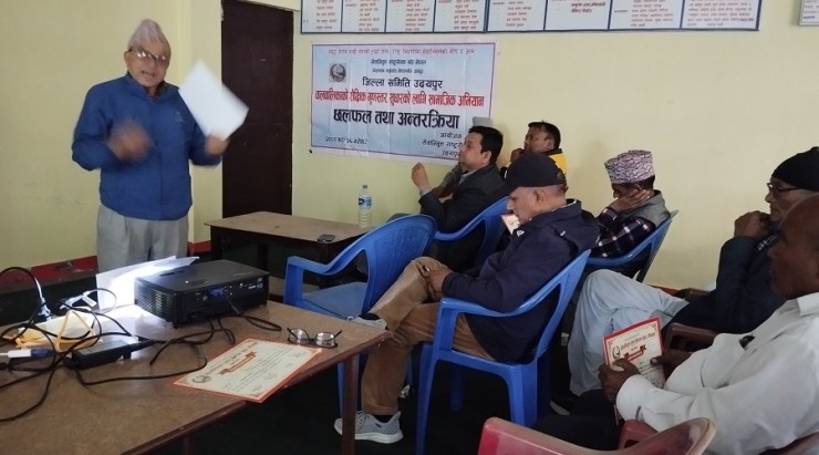 सेवा निवृत राष्ट्रसेवक संघ जिल्ला समिति उदयपुरका अध्यक्ष हर्कनारायण श्रेष्ठको अध्यक्षतामा भएको सो कार्यक्रममा उपाध्यक्ष इन्द्रराज कार्कीले स्वागत मन्तव्य र सञ्चालन शुकदेव चौधरीले गरेका थिए।