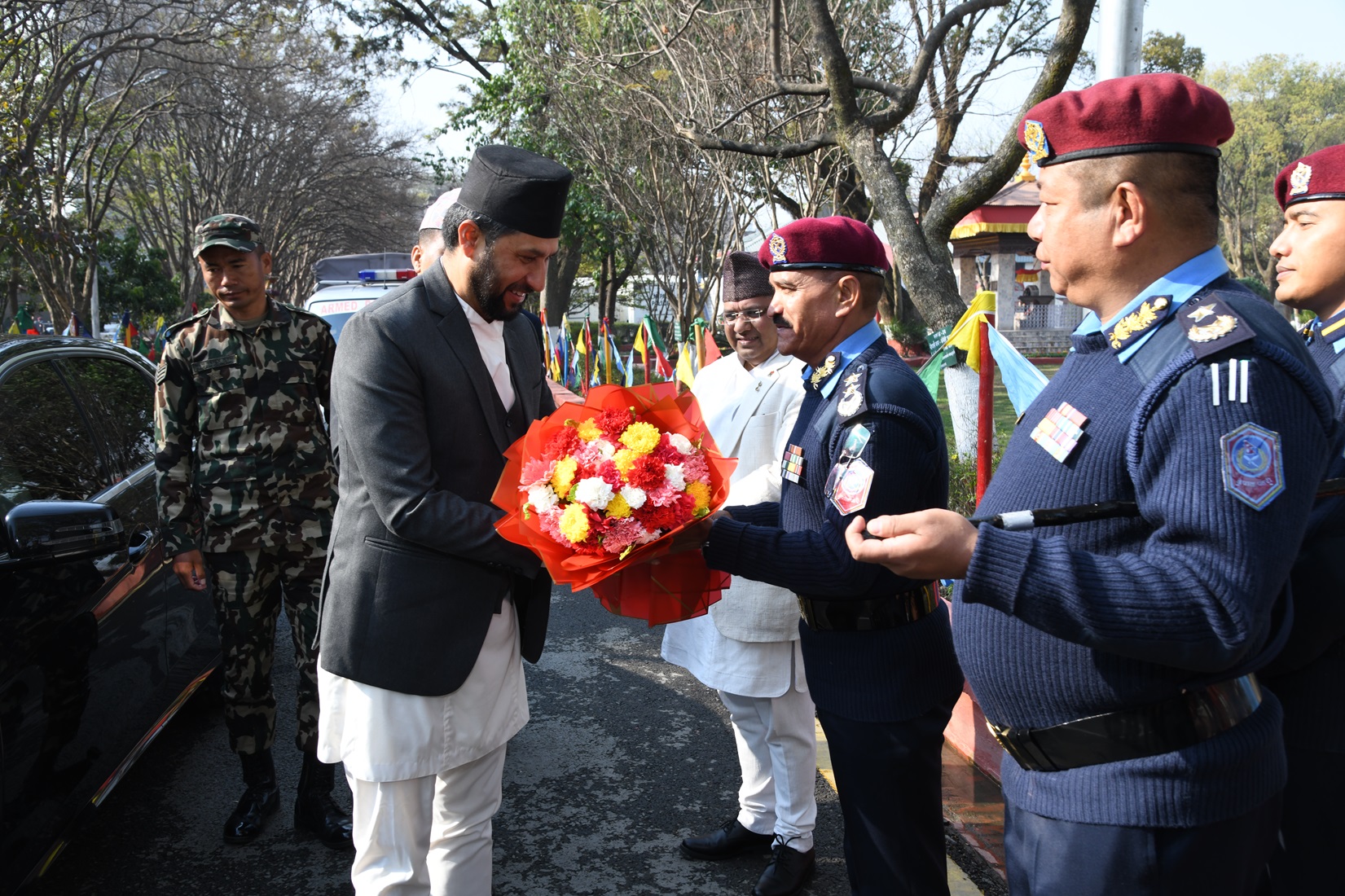 उपप्रधानमन्त्री एवम् गृहमन्त्री रवि लामिछानेलाई नेपाल प्रहरी प्रधान कार्यालयमा प्रहरी महानिरीक्षक बसन्त बहादुर कुँवर, प्रहरी अतिरिक्त महानिरीक्षकहरू, प्रहरी नायव महानिरीक्षकहरू लगायत वरिष्ठ प्रहरी अधिकृतहरूले हार्दिक स्वागत गरे । सो क्रममा उनले नेपाल प्रहरी प्रधान कार्यालय परिसरस्थित अमर प्रहरी स्मारकमा पुष्प गुच्छा अर्पण गरेका थिए । निरीक्षण भ्रमणका क्रममा उपप्रधानमन्त्री एवम् गृहमन्त्री लामिछानेले नेपाल प्रहरी प्रधान कार्यालय तथा कार्यालयस्थित संग्रहालयको निरीक्षण गर्नुका साथै त्यस सम्बन्धी गतिविधिबारे जानकारी लिए ।