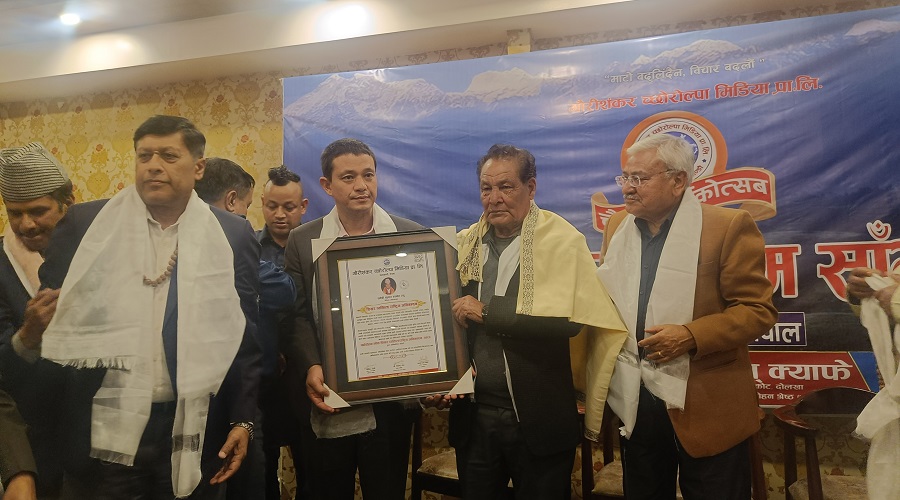 गौरीशङ्कर च्छो– रोल्पा मिडिया प्रालिले आफ्नो चौथो वार्षिक उत्सवको अवसरमा विभिन्न क्षेत्रका उत्कृष्ट व्यक्तिलाई सम्मान गर्दै दोलखा शैलुङ स्वर्णिम साँझ– २०८० को आयोजना गरेको छ ।