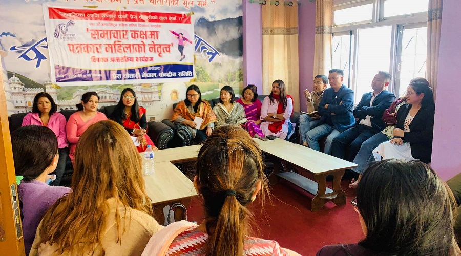 कार्यक्रम चौतारी उपाध्यक्ष देविका घर्तीको अध्यक्षतामा सम्पन्न भएको थियो । उनले महिला भएकै कारण सुत्केरी अवस्थामा पेसागत जिम्मेवारीवाट अलग हुनुपरेको पीडा व्यक्त गरिन् । गर्भावस्था र सुत्केरी अवस्थालाई समाचार कक्षका पुरुषले बुझ्न नसक्नु दुर्भाग्य हो भन्दै उनले निराशा मात्रै बाँड्ने होइन आशा थपेर नयाँलाई आकर्षित गरौँ भन्दै श्रमजीवी महिलाको हितमा सबै लाग्न आग्रह गरिन् ।