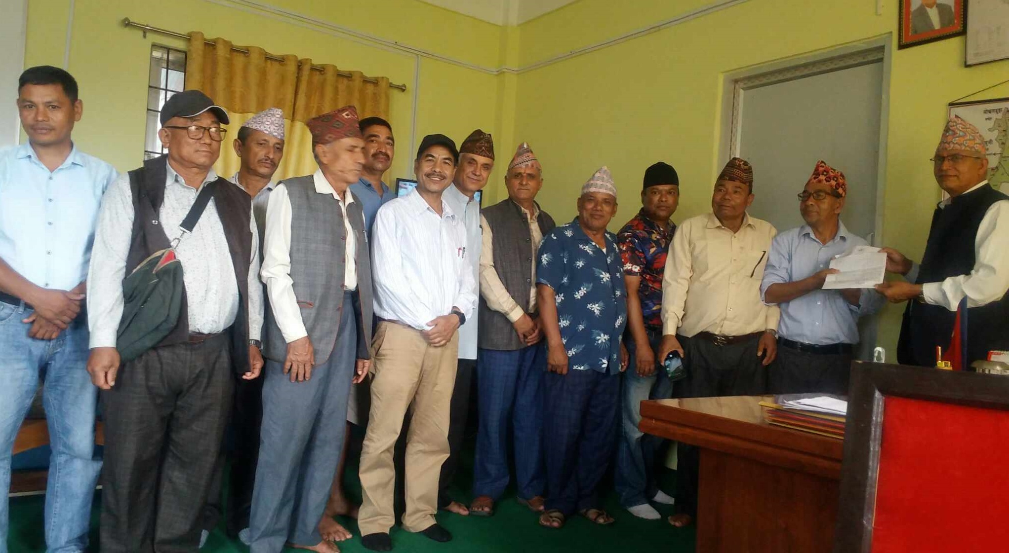 सेवा निवृत्त राष्ट्रसेवक संघ उदयपुरका अध्यक्ष हर्कनारायण श्रेष्ठको नेतृत्वमा जिल्ला प्रशासन कार्यालय गाईघाट उदयपुरका प्रमुख जिल्ला अधिकारी हरिप्रसाद घिमिरे समक्ष १५ बुँदे ज्ञापनपत्र बुझाइएको छ ।