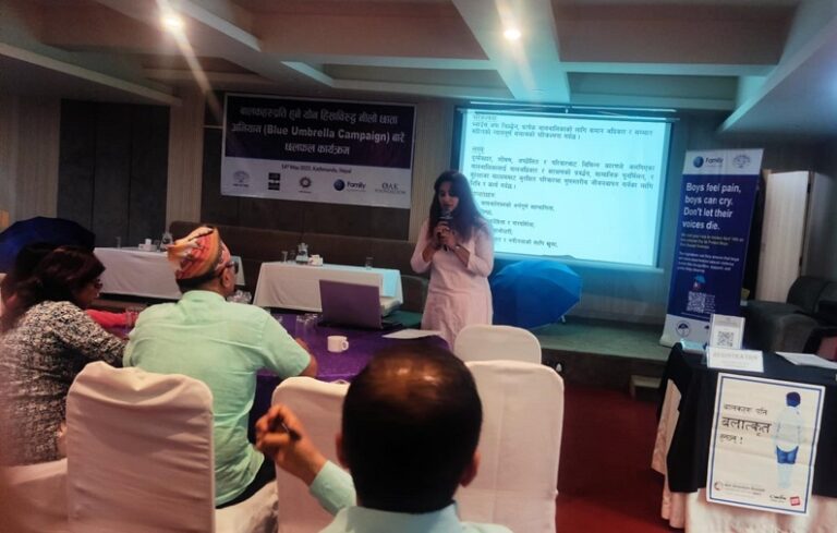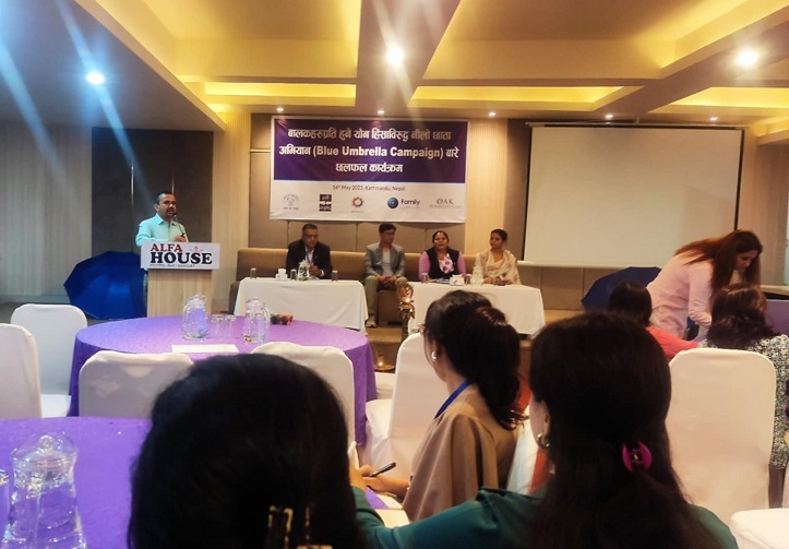 सञ्चारकर्मी कीर्ति भट्टराईले ‘बालकहरुमाथि हुने यौन हिंसाविरुद्ध नीलो छाता अभियान’ विषयक कार्यत्रपत्र प्रस्तुत गर्दै हिंसा र दुर्व्यवहार सहन नसकेर कतिपय बालकहरुले आत्महत्यासम्मको अवस्थामा पुगेको बताइन् ।