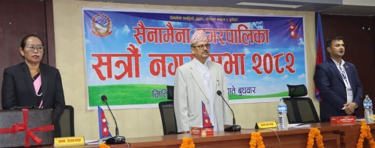 नगरपालिकाको सत्रौं नगरसभाको मंगलबार सम्पन्न बैठकमा सैनामैना नगरपालिका उपप्रमुख बिना रानाले स्वास्थ्य, कृषि, पूर्वाधार विकास, पर्यटन र शिक्षा क्षेत्रलाई प्राथमिकता दिँदै बजेट सार्वजनिक गर्नुभएको हो । अधुरा योजना समयमै सम्पÞन्न गर्ने, कृषि क्षेत्रलाई व्यवसायीक बनाउने, विपद प्रतिकार्य योजना कार्यान्वनय गर्ने बजेटमा उल्लेख छ ।