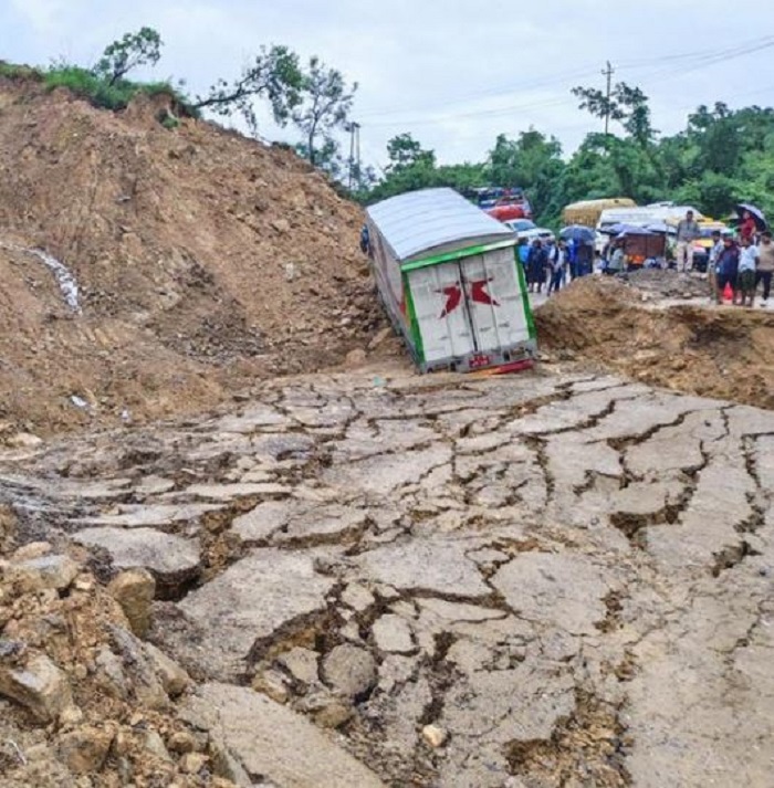 पश्चिम नवलपरासीको दाउन्नेस्थित खुर्सानी खोलामा सडक भासिएपछि पूर्वपश्चिम राजमार्गको बर्दघाट–दुम्किबास खण्डमा यातायात पूर्णरूपमा अवरुद्ध भएको छ। भासिएको स्थानमा ट्रक फसेपछि रातिदेखि सवारी आवागमन ठप्प भएको हो।