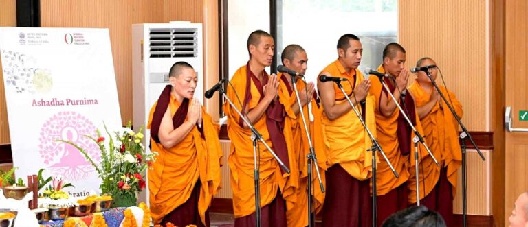 पवित्र अषाढ पूर्णिमाको अवसरमा काठमाडौंस्थित भारतीय दूतावास ले नेपालभरका विहारहरुबाट आएका थेरावाद, महायान र वज्रयान परम्पराका भिक्षु तथा प्रतिनिधिहरुको सहभागितामा विहीबार विशेष प्रार्थना समारोह आयोजना ग¥यो ।