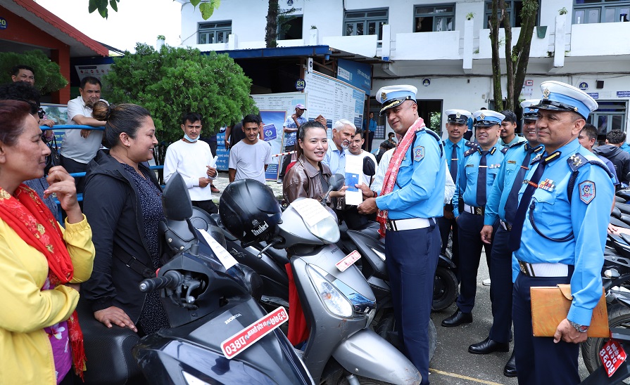 काठमाडौं उपत्यका ट्राफिक प्रहरी कार्यालयमा सोमबार आयोजित एक कार्यक्रमबीच सोही कार्यालयका प्रमुख प्रहरी वरिष्ठ उपरीक्षक नवराज अधिकारीले १२ वटा मोटरसाइकल र ८ वटा स्कुटर गरी २० वटा सवारी साधन सम्बन्धित धनीलाई हस्तान्तरण गरेका हुन ।