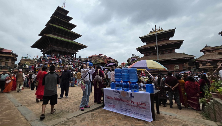 रोटरी न्यातपोलले प्रत्येक वर्षको गाईजात्राका अवसरमा भक्तपुरमा आयोजना हुने मेलामा भक्तजन तथा दर्शकहरुलाई पानी वितरण गर्दै आएको छ ।