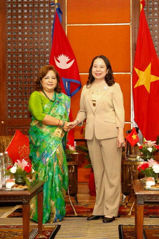 समाजवादी गणतन्त्र भियतनामका उपराष्ट्रपति भो थि आन सुआनसँग परराष्ट्रमन्त्री डा. आरजु राणा देउवाले आज यहाँ शिष्टाचार भेटवार्ता गर्नुभएको छ । उपराष्ट्रपति रामसहायप्रसाद यादवको मैत्रीपूर्ण निमन्त्रणामा नेपालको तीनदिने औपचारिक भ्रमणका लागि आज काठमाडौँ आउनुभएकी उपराष्ट्रपति भोसँग मन्त्री डा राणाले भेटवार्ता गर्नुभएको हो ।