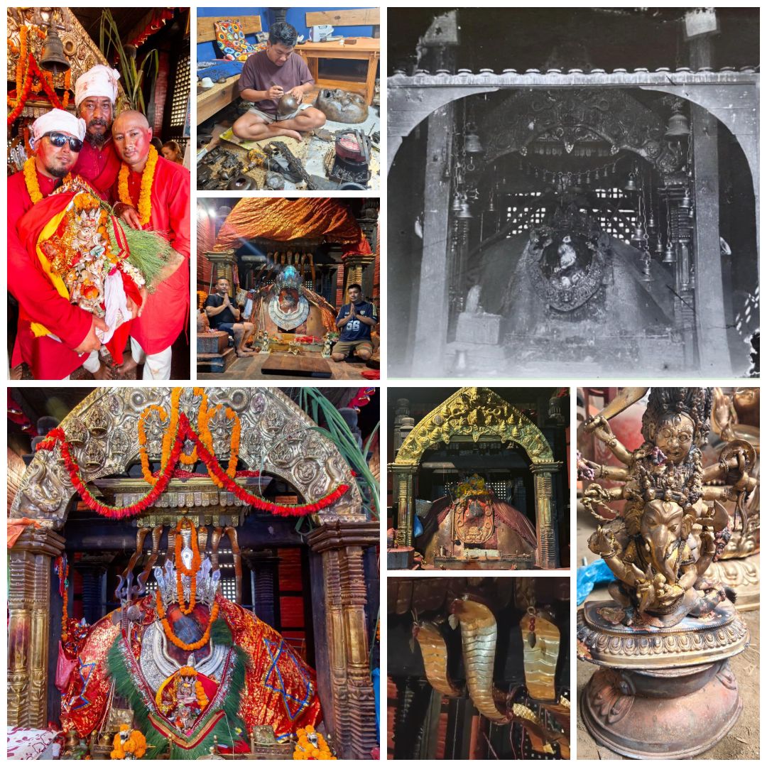उहाँले भन्नुभयो– ‘मन्दिरमा भित्र र बाहिरको तोरण बनायौं । माथि नागकन्या समातेको गरुड, फूलमाला समातेको परी, ताण्डव मुद्रामा नाचेको गणेश, रिद्धीसिद्धी थियो त्यो पनि हराएर पाता राखिएको थियो । त्यो पाता निकालेर जस्ताको तस्तै संरचना तयार गरिएको छ । छेपु अर्थात् कीर्तिमुख नदेखिने गरी, पातामा पिटेर राखेको थियो । पुरानै शैलीमा गरुड र ताण्डव मुद्रामा रहेको गणेश राख्यौं । नागराजाको चाँदीको मूर्ति टुक्राटुक्रा भएको थियो जोडेर पुरानै नागराज बनायौं ।’