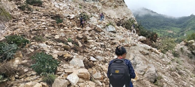 बाटोमा सधैं लेदो माटोसहित पहिरो बगिरहन्छ । सडकको नाम निशाना छैन । छल्पुन्नादेखि रज्याउँडा सम्म करिब दुई सय मिटर सडकखण्ड पहिरोमा परिणत भएको छ । स्व. नन्दराम पण्डित, नरप्रशासद जैशी र रामलाल जैशीको जग्गा पुरै गइसक्यो , स्कुलको गेट चर्किसकेको छ । स्कुल तलमाथि वरिपरि पहिरो छ । विद्यालय भवननै जोखिममा परेको छ । सडक तलमाथि पहिरो लाग्दा स–साना विद्यार्थीले त गत असारदेखि स्कुल आउनै छोडेका छन् । लक्ष्मी माविमा एक सय ६७ विद्यार्थी अध्ययनरत छन् । तर, पहिरोकै कारण ३०-४० विद्यार्थी मुस्किले स्कुल पुग्छन्। त्यो पनि शिक्षकले विद्यार्थिलाई काखी च्यापेर पहिरो कटाउनु पर्छ,लक्ष्मी माविका लेखापाल रणवहादुर विकले भने।