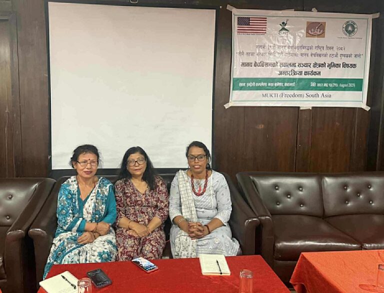 यसैबीच, कार्यक्रमको दोस्रो सत्रमा शक्ति समूह र क्रियाशिल पत्रकार महिला (डब्लुडब्लुजे) को संयुक्त आयोजनामा मानव बेचबिखनविरुद्धका कानुनहरूको प्रभावकारी कार्यान्वयन र सञ्चार क्षेत्रको भूमिकाबारे अन्तरक्रिया कार्यक्रम सम्पन्न भएको छ । सञ्चारकर्मीहरूले मानव बेचबिखनका मुद्दामा अनुसन्धानमूलक र विश्लेषणात्मक समाचार प्रस्तुत गर्नुपर्नेमा जोड दिएका छन्।