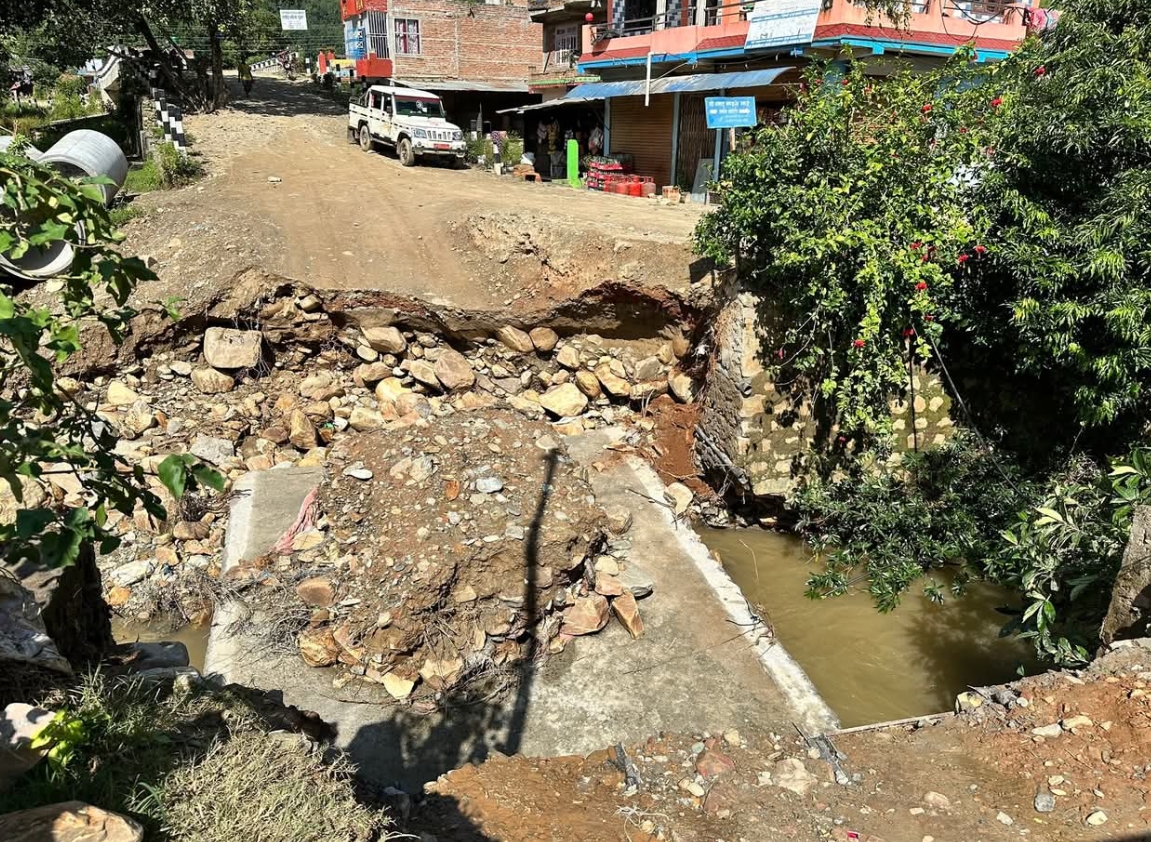 असोज ९:१० गते सामान्य गाडी गुड्ने गरी मर्मत गरिएको पुल हिजो बेलुकीको वर्षातपछि पुनः भत्किँदै यातायात अवरुद्ध भएको हो ।