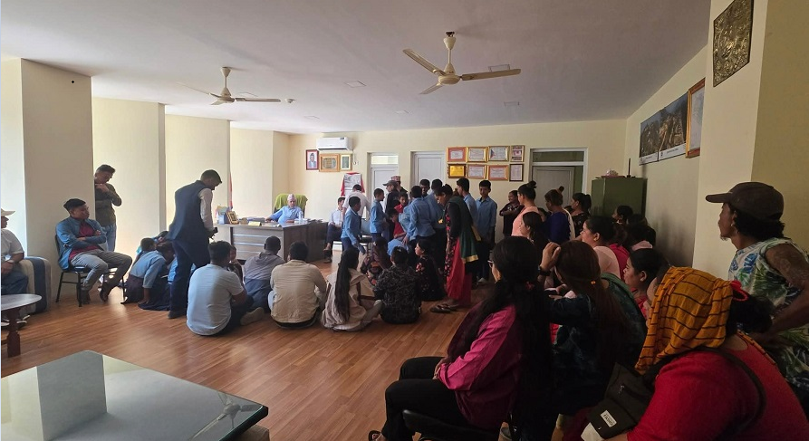 नेकपा एसमा जिल्ला, पालिका र केन्द्रीय नेताहरु विद्यालयका विद्यार्थी लिएर गाउँपालिका गएका थिए । गाउँपालिका अध्यक्ष उपाध्यक्षसंग छलफल भएर शिक्षक व्यवस्थापनको लागि गाउँपालिका अध्यक्ष केदारनाथ खतिवडा र उपाध्यक्ष भाइकाजी तिवारी प्रतिवद्धता व्यक्त गरेर केही समय पर्खन आग्रह गरिएपनि नेकपा एसका नेताको निर्देशनमा तालाबन्दी गरिएको थियो ।