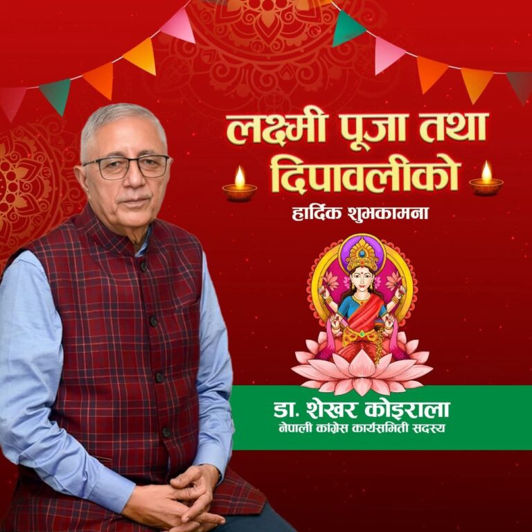 नेपाली कांग्रेसका नेता डा. शेखर कोइरालाले लक्ष्मीपूजा तथा दीपावलीको अवसरमा सबै नेपाली दाजुभाइ तथा दिदीबहिनीहरूलाई हार्दिक शुभकामना व्यक्त गरेका छन्।