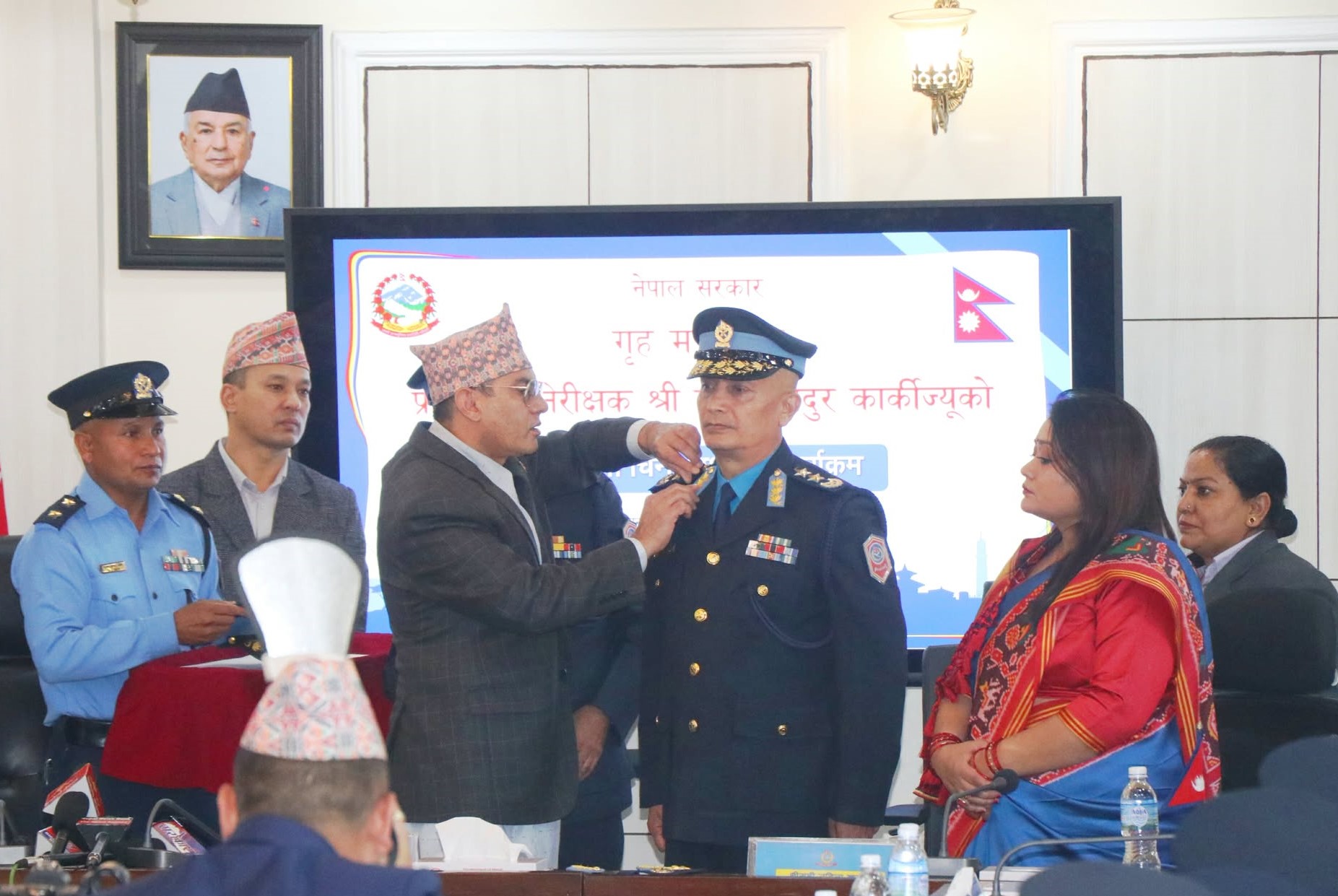 नवनियुक्त प्रहरी महानिरीक्षक (आईजीपी) दानबहादुर कार्कीले सोमबार औपचारिक रूपमा दर्ज्यानी चिह्न लगाएर नेपाल प्रहरीको नेतृत्व सम्हाल्नुभएको छ।