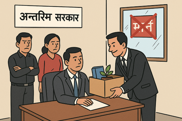 अन्तरिम सरकारले कर्मचारी सरुवामा गैरकानुनी कार्य गरेको पाइएको छ । सरकारले केही समय अघिमात्रै कोशी प्रदेशका वन सचिव विशाल घिमिरेलाई सरुवा गरी उहाँको ठाउँमा नियमविपरीत प्रदेशकै एक कर्मचारीलाई सचिवको जिम्मेवारी दिने वातावरण बनाइदिएको छ ।
