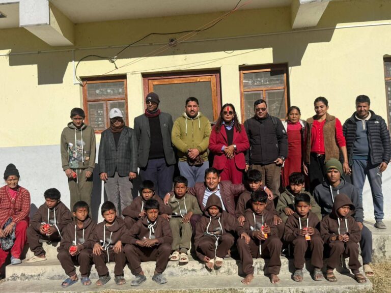 चिसोको समयमा न्यानो कपडा लगाएतका शैक्षिक खाद्यान्न सामग्री पाएपछि बालबालिका खुसी हुदै प्रअ खत्रीलाइ टिका लगाएर जन्मदिन मनाएका थिए ।