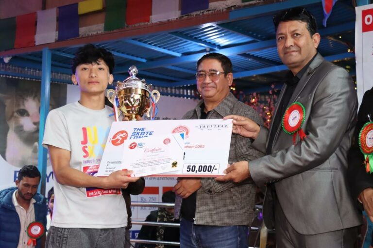 उक्त प्रतियोगिता अन्तर्गत प्रथम दित्तीय र तृतीय हुनेलाई नेपाल ओलम्पिक कमिटी का अध्यक्ष जीवन राम श्रेष्ठ, गोकर्णेश्वर नगर पालिका का मेयर दीपक कुमार रिजाल र नेपाल स्केटिंग तथा स्केटबोर्डिंग संघ का अध्यक्ष अच्युत खनाल ज्यू ले संयुक्त रुपमा रू। पचास हज़ार, तिस हजार, पन्ध्र हजार नगद, ट्रफी र प्रमाणपत्र, प्रदान गर्नू भयो ।