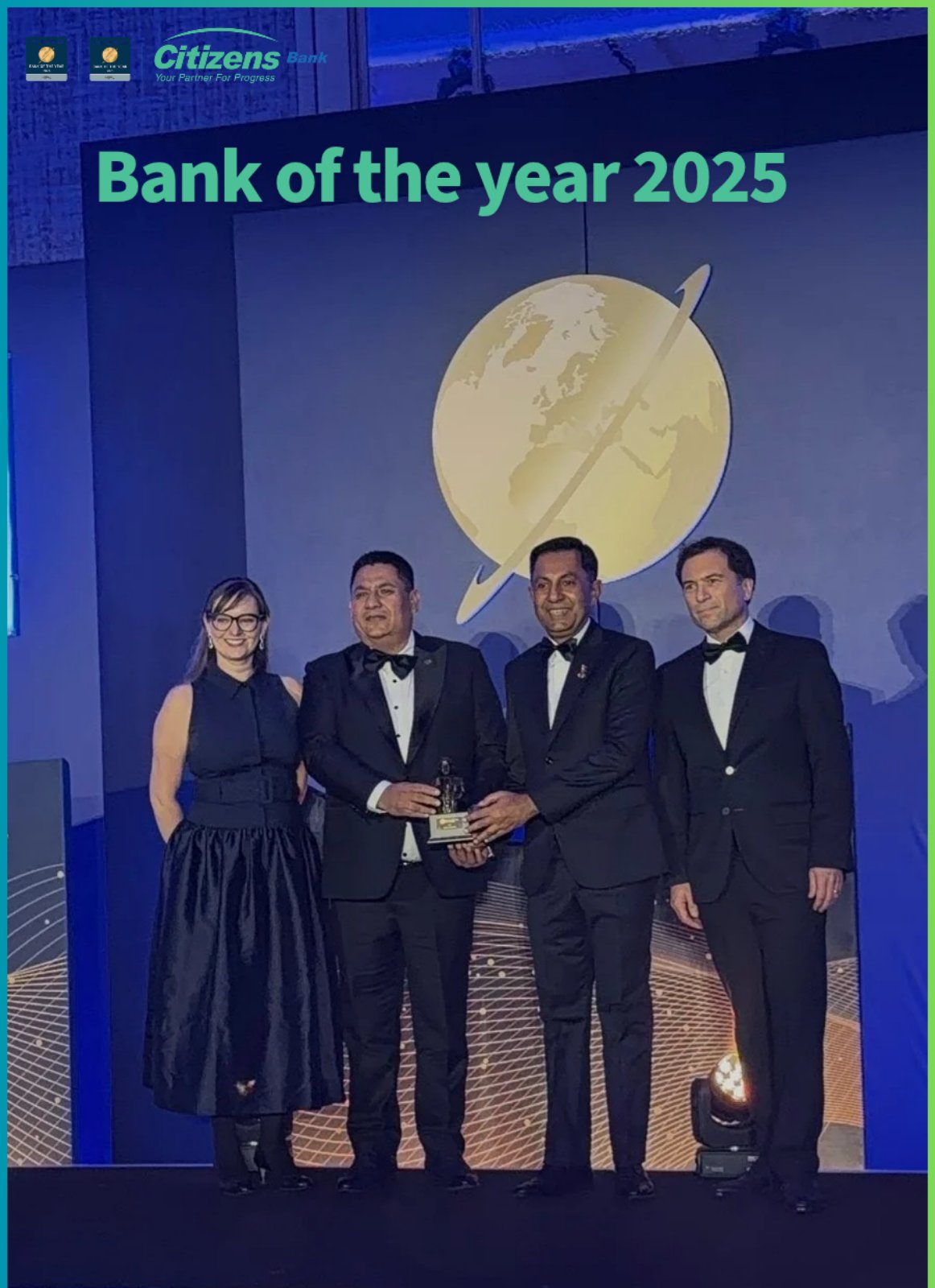 सिटिजन्स बैंक इन्टरनेसनलले पुनः ‘बैंक अफ द ईयर २०२५’ अवार्ड प्राप्त गरेको छ । लण्डनमा द फाइनान्सियल टाइम्सद्वारा आयोजित समारोहमा बैंकका अध्यक्ष प्रवलजंग पाण्डे र प्रमुख कार्यकारी अधिकृत गणेशराज पोखरेलले अवार्ड ग्रहण गर्नुभयो । यसअघि गत वर्ष बैंकले सोही अवार्ड जितेको थियो । अवार्ड समारोहमा १२५ भन्दा बढी देशका बैंकका प्रतिनिधिहरूको सहभागिता थियो ।