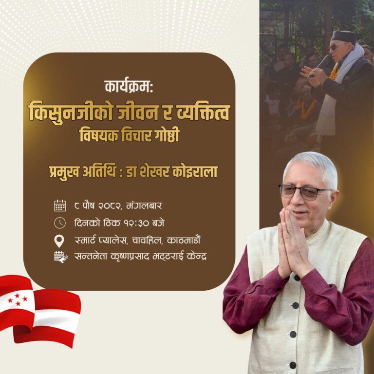 सन्तनेता कृष्णप्रसाद भट्टराई केन्द्रको आयोजनामा किसुनजीको जीवन र व्यक्तित्व विषयक विचार गोष्ठी आयोजना हुने भएको छ।