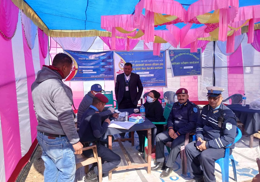 जिल्ला ट्राफिक कार्यालय, जिल्ला प्रहरी कार्यालय, जिल्ला स्वास्थ्य समन्वय कार्यालय र इलाका प्रहरी कार्यालय भीमफेदीको संयुक्त आयोजना तथा प्राथमिक स्वास्थ्य केन्द्र भीमफेदीका प्राविधिकहरुको सहयोगमा मंगलबार दिनभर परीक्षण गरिएको हो । पहाडी क्षेत्रको घुमाउरो र साँघुरो सडकमा दुर्घटना हुने क्रम बढेपछि ट्रफिक प्रहरीको समन्वयमा सवारीसाधन र चालकको परीक्षण सुरु गरिएको हो ।