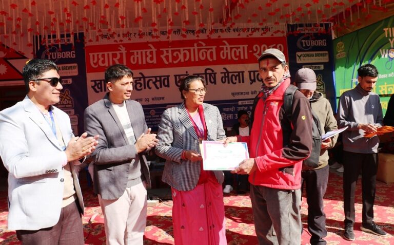 ११औं माघेसङ्क्रान्ति मेला, खाना महोत्सव एवं कृषि मेला प्रदर्शनीमा सहभागीमध्ये म्याग्दीका उत्कृष्ट २० जना कृषकहरु शनिवार पुरस्कृत भएका छन् । म्याग्दी उद्योग वाणिज्य संघ र महिला उद्यम विकास समितिको आयोजना र कृषि विकास कार्यालयसँगको समन्वय तथा सहकार्यमा सञ्चालित कृषि मेला प्रदर्शनीमा सहभागी ६१ जनामध्ये उत्कृष्ट २० जना कृषकहरुलाई छनोट गरेर पुरस्कृत गरिएको हो ।