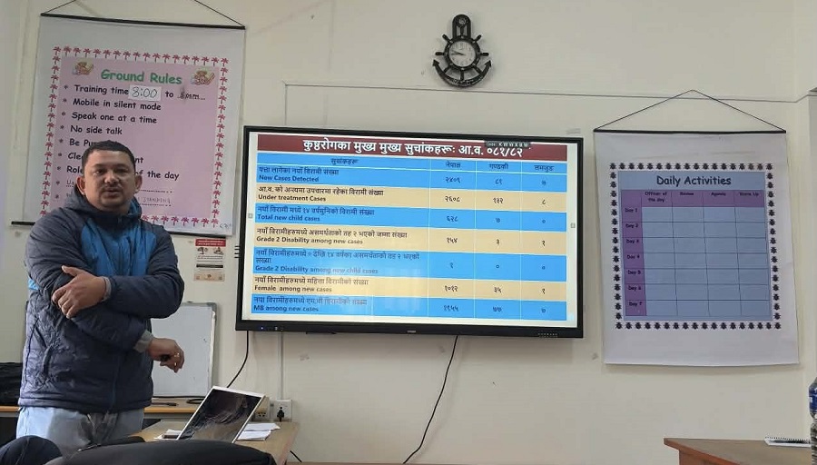 प्रदेश जनस्वास्थ्य कार्यालयका अनुसार नयाँ भेटिएका पाँच जनासहित हाल जिल्लामा १० जना कुष्ठरोगका बिरामी उपचाररत छन् । कार्यक्रममा क्षय–कुष्ठ सुपरभाइजर निरोजकुमार श्रेष्ठले कुष्ठरोगको परिचय, विश्व तथा नेपालमा यसको अवस्था, उपचार प्रक्रिया, शंकास्पद लक्षण तथा तथ्यांकबारे जानकारी दिएका थिए ।