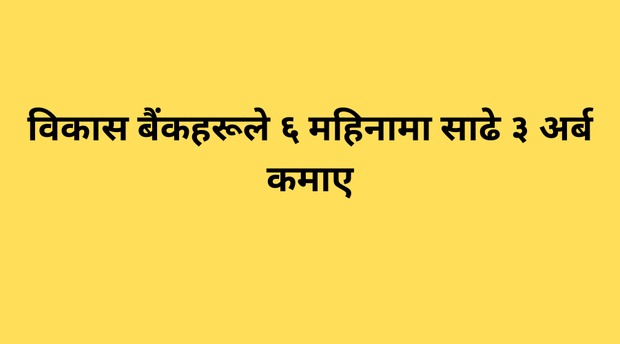 गत आर्थिक वर्षको दोस्रो त्रैमासमा विकास बैंकहरूको कुल नाफा २ अर्ब ५५ करोड रुपैयाँ थियो । यस अवधिमा १५ वटा विकास बैंकमध्ये नारायणी विकास बैंक र सिन्धु विकास बैंक मात्र घाटामा छन् । नारायणी विकास बैंक ४ करोड ७३ लाख र सिन्धु विकास बैंक १ करोड ५४ लाख रुपैयाँ घाटामा रहेको छ ।
