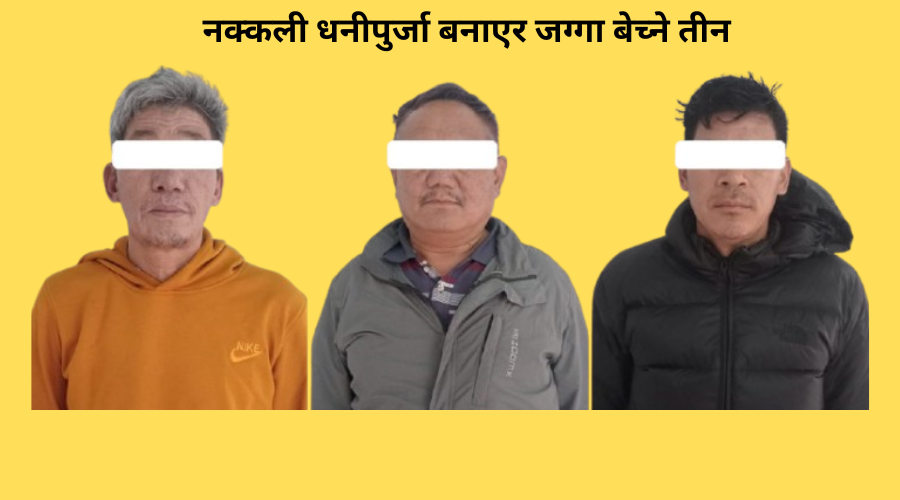 बूढानीलकण्ठ नगरपालिका–४ पासिकोटमा रहेको २ रोपनी ६ आना जग्गा नक्कली धनीपुर्जा बनाएर बेच्ने प्रयास गरेको आरोपमा तीन जना पक्राउ परेका छन्। पक्राउ पर्नेमा सिन्धुपाल्चोकका छिरिङ शेर्पा (५८), फुरी शेर्पा (४८) र रामेछापका भुपाल सिं तामाङ (५८) रहेका छन्।