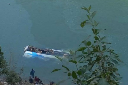 रामेछापको सेलेघाटमा यात्रुवाहक बस तामाकोशीमा खस्दा ५ जनाको मृत्यु