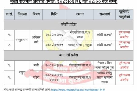 अविरल वर्षा र पहिरोले कोशी र बागमती प्रदेशका राजमार्ग पूर्ण रूपमा अवरुद्ध