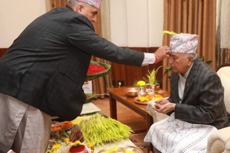 राष्ट्रपति पौडेलले शुभ साइतमा टीका लगाए