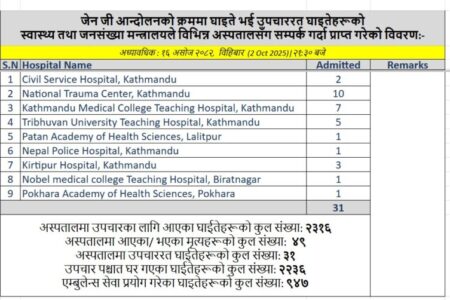 स्वास्थ्य मन्त्रालयको तथ्यांक: आन्दोलनमा हजारौं घाइते