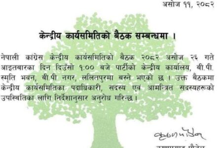 कांग्रेसको केन्द्रीय कार्यसमिति बैठक असोज २६ गते सानेपामा
