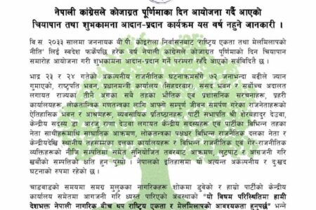 कोजाग्रत पूर्णिमाको चियापान कार्यक्रम यस वर्ष स्थगित