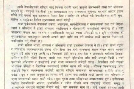 पूर्वराजा ज्ञानेन्द्रद्वारा २०८२ को दशैंमा शुभकामना सन्देश
