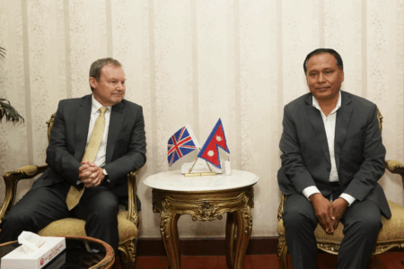 ऊर्जा मन्त्री घिसिङ र बेलायती राजदूत फेनबीच शिष्टाचार भेट