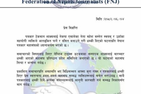 पत्रकार टेकमान शाक्यलाई एमाले नेता बस्नेतबाट धम्की, महासंघको भर्त्सना