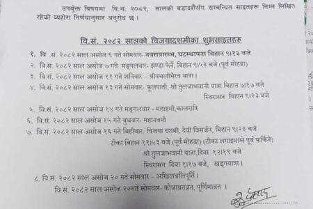 वि.सं. २०८२ सालको बडादशैंका साइत सार्वजनिक
