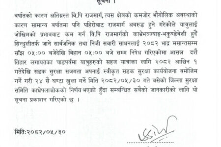 असोज १ गतेदेखि विपी राजमार्ग २४ घण्टा सञ्चालन