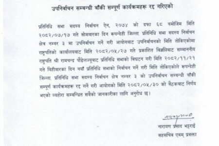 रुपन्देही–३ को उपनिर्वाचन रद्द, अब फागुन २१ गते आम निर्वाचन