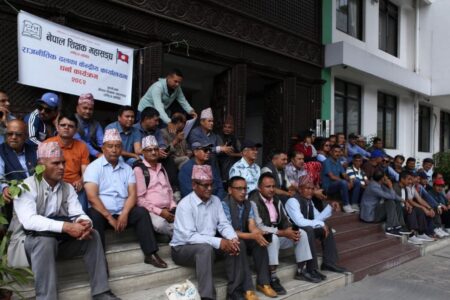 शिक्षक महासङ्घद्वारा कांग्रेस कार्यालयमा धर्ना