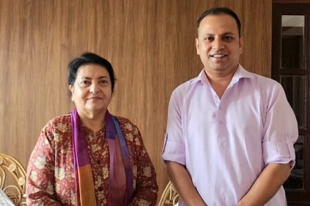 पूर्व राष्ट्रपति भण्डारी र रास्वपा प्रवक्ता मनिष झाबीच भेटवार्ता