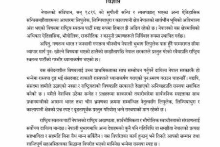 लिपुलेक सम्झौताप्रति सरकार गम्भीर नभएको रास्वपाको आरोप