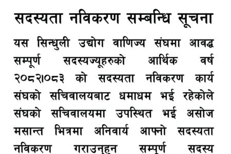 सिन्धुली उद्योग वाणिज्य संघले सदस्यता नविकरणको सूचना जारी