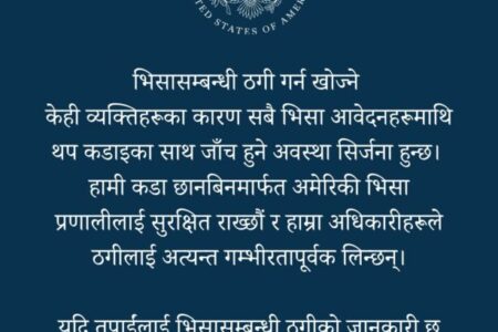 अमेरिकी भिसा ठगीबारे दूतावासको चेतावनी