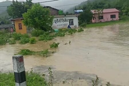 सिन्धुलीको दुधौलीमा आएको बाढीका कारण एक जना घाइते, १० घर डुबानमा