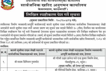 काम सन्तोषजनक नभएको भन्दै २४ ठेकेदार कम्पनीलाई ७ दिनको स्पष्टीकरण माग